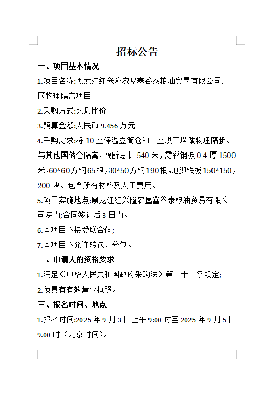 鑫谷泰粮油贸易有限公司厂区物理隔离项目