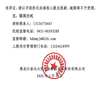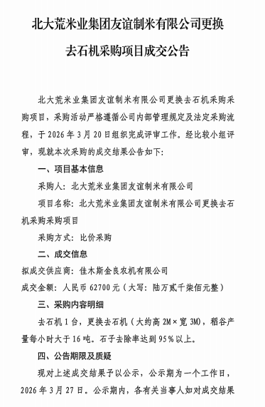 北大荒米业集团友谊制米有限公司更换去石机采购项目成交公告